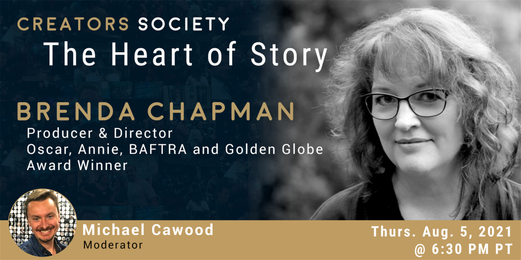 Please join us for a discussion on “The Heart of Story,” with Producer and Director BRENDA CHAPMAN, a legendary winner of an Oscar, Annie, BAFTA and Golden Globe Awards. Our amazing moderator is multi-award winning British Animation Producer and Director, MICHAEL CAWOOD. Our guests will walk us through developing the ideas that bring a story to life while maintaining the key ingredients of building on human connection. We will dive into what makes an animated story great along with creating empathetic characters. Come unlock the magic of creating stories with us!!!