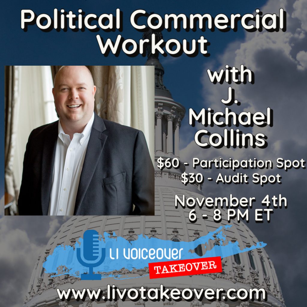In this information-packed and performance-heavy workshop, JMC takes you through the strategies and techniques that have helped him book hundreds of political commercials throughout his career, as well as producing and casting real spots for air and dozens of political VO demos, including the 2020 Voice Arts Award-winner for Outstanding Political Demo. As the mid-terms approach, with control of Congress in the balance, the airwaves are about to get HOT! Learn where to find the work and how to book it with one of the most engaged political voice actors in the business.