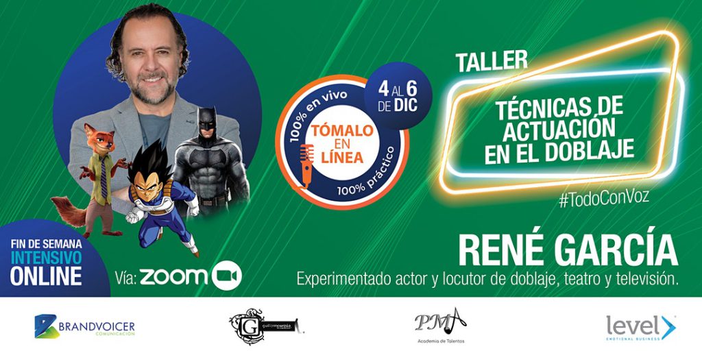 Nueve horas de capacitación en línea. Actividades de actuación, manejo de emociones, lectura y manejo profesional de la voz: viernes 4, sábado 5 y domingo 6 de diciembre de 10 a 13 horas, en las que conocerás una visión general sobre diversas técnicas de ritmo, creación de personajes, actuación y doblaje.