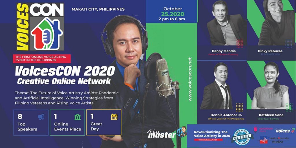 The first-ever Annual Voices Convention was strategically created in celebration of the 15th Anniversary of CreatiVoices Productions. This will be an online convention to help our fellow voice artist cope up with the current requirements of voice artists to adjust to the new normal and show the importance of having your own home studio. This half-day event will be broken down by half of the day to go to respective breakout rooms with respective speakers under their niche.
